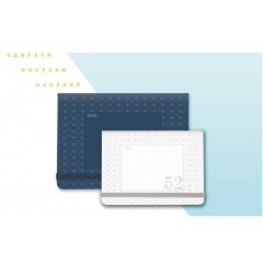 高端纯皮封面、烫金工艺、镀金活页可卸、收纳层、贴纸周历桌