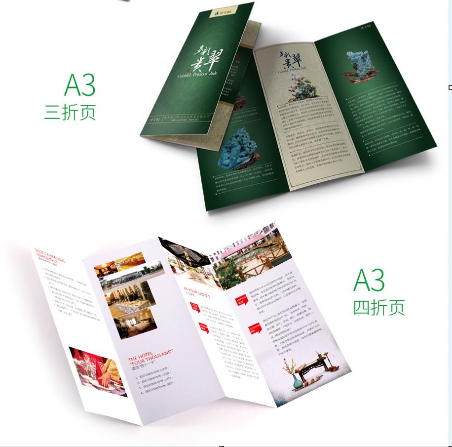 该款折页展开尺寸为A3大小,承载信息量大,适合内容和类别稍多的宣传内容,携带方便!量身设计,过目不忘;色彩鲜亮,文字清晰;精细印刷,环保油墨;优质纸张,品质保证;产品宣传,没它不行。